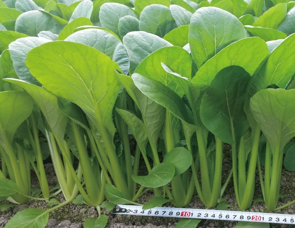 濃緑色でつやがあり、商品性は高い。耐暑性・耐寒性を持ち合わせ、乾燥に強く、水でのコントロールがしやすい。極立性で荷姿が綺麗です。下葉が取れやすく、軸部が三角形にまとまり、束ね適正が抜群です。葉先揃いが良く、カッピングはほぼありません。細根が多く、抜きやすく形状良い。葉柄のくびれ部分が平べったく、束ねる際に折れにくく組みやすい。